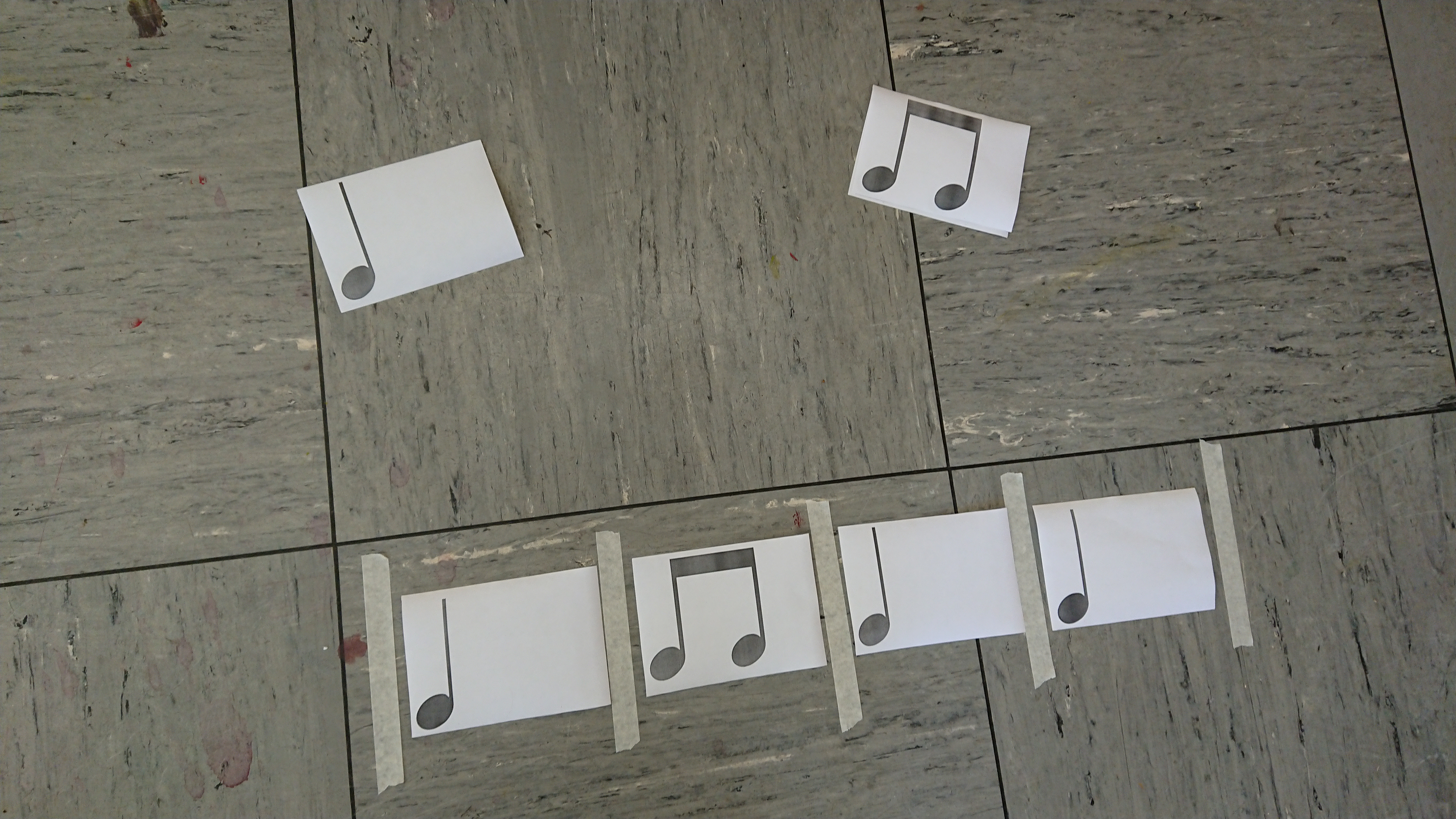 Bild re: Rhythmuskarten + Malerkrepp (trennt Zählzeiten/kennzeichnet